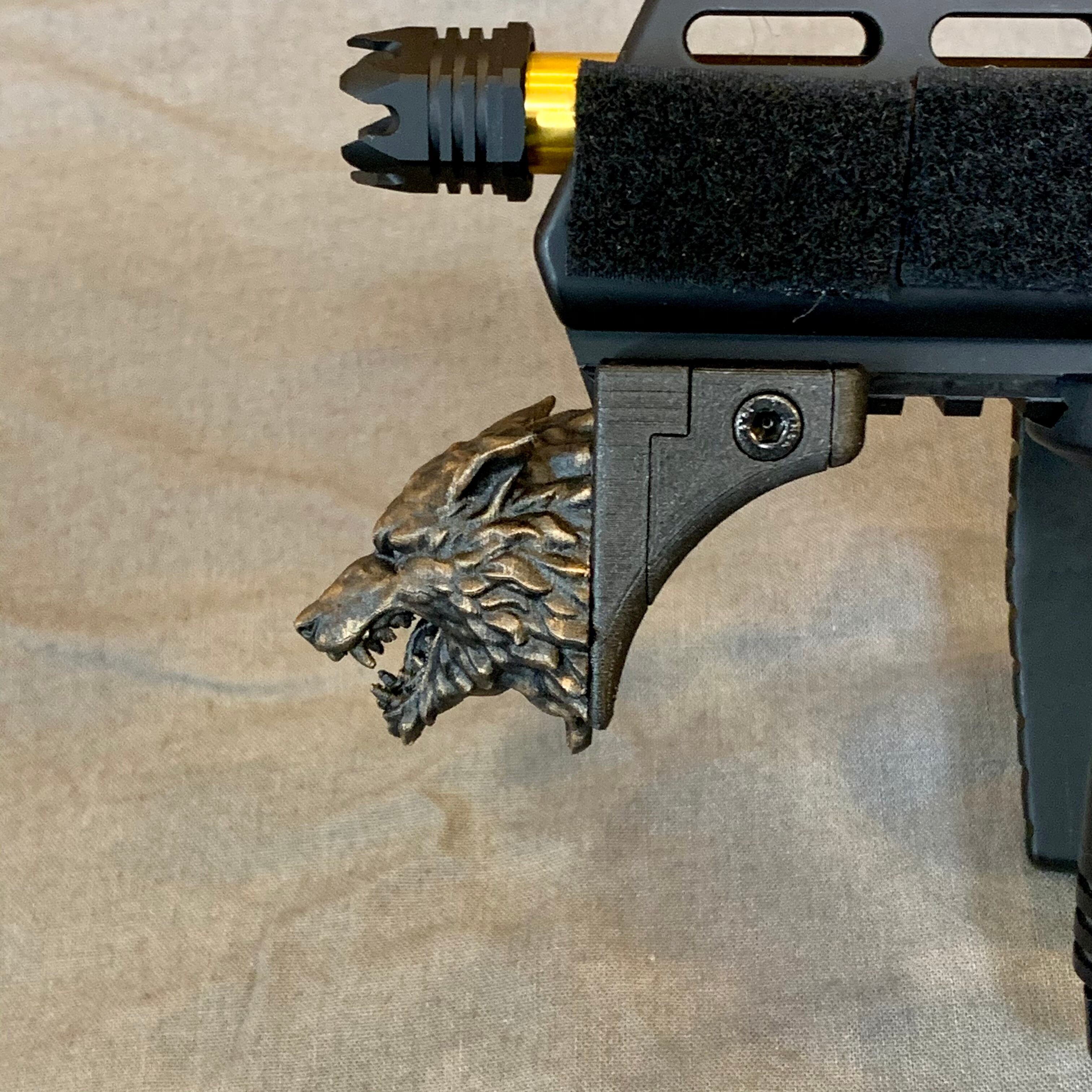 ハンドストップも兼ねた、アンダーレールアクセサリーです。 狼バージョン2です。 画像は塗装済みサンプルです。 商品は未塗装ブラックとなります。 素材 PETG-CF