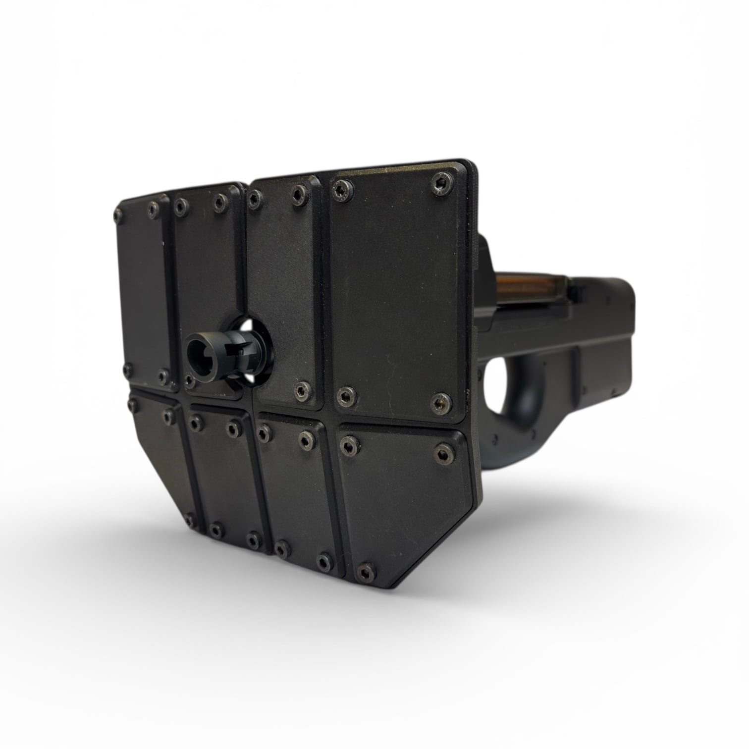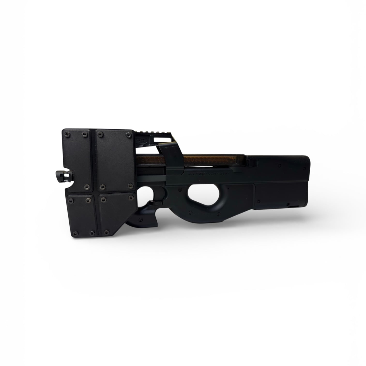 It is a visual and stylistic airsoft accessory, created to enhance the front profile and overall presence of the P90.