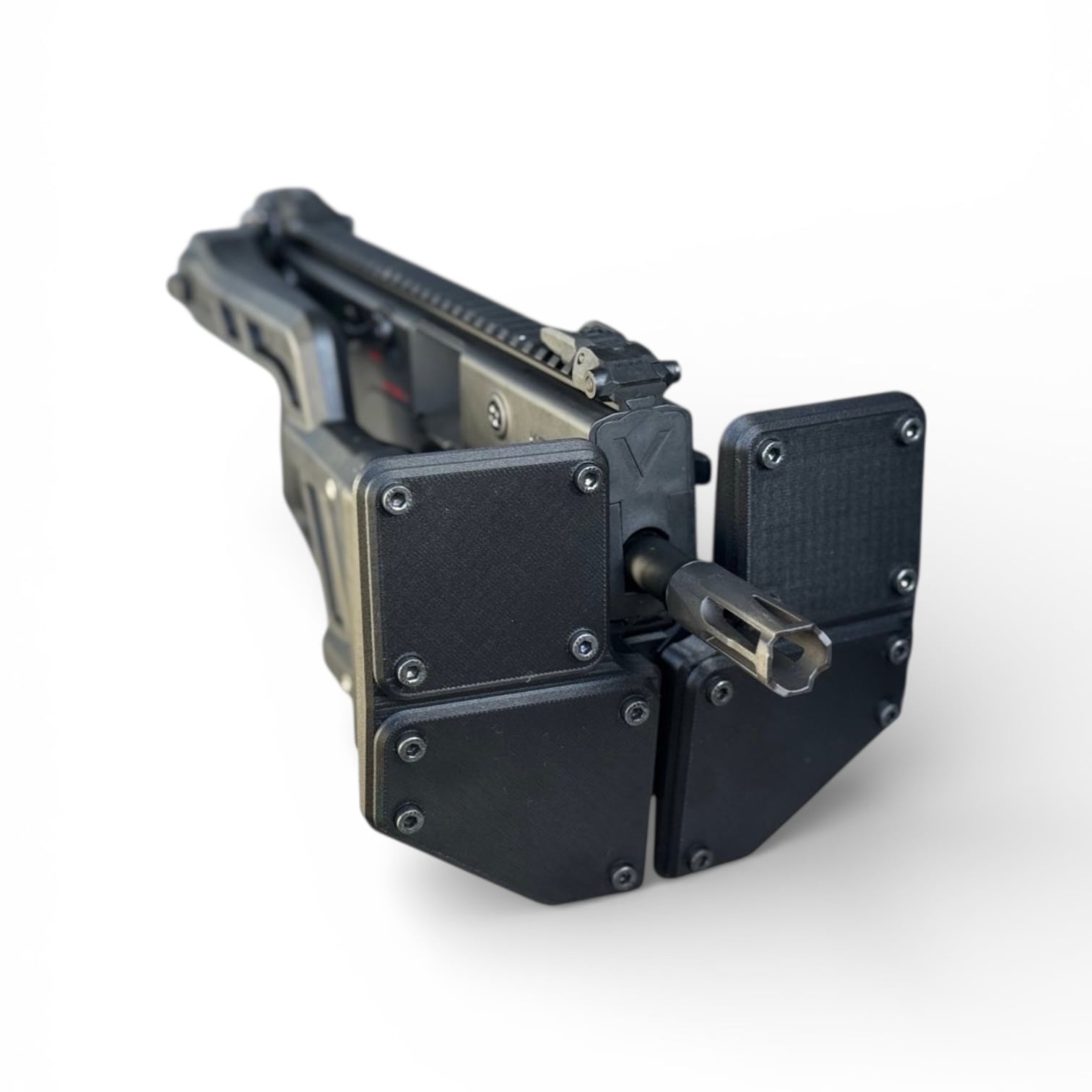 The SENTRY SHIELD : KV is a front-mounted accessory designed specifically for KRISS VECTOR airsoft platforms.
